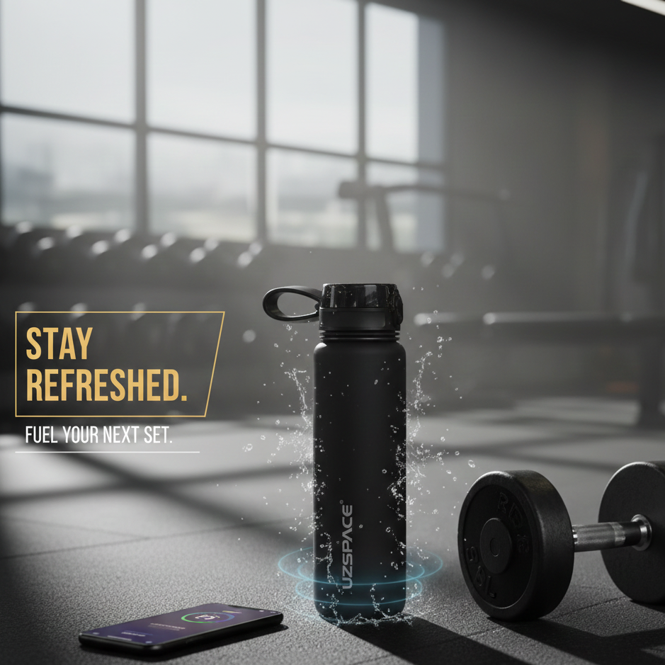 Meet the UZSPACE bottle your ultimate hydration partner. Crafted from shatter-resistant materials, it is built to survive the hardest workouts while keeping your water clean and refreshing. Perfectly designed to pair with our magnetic gym accessories.
